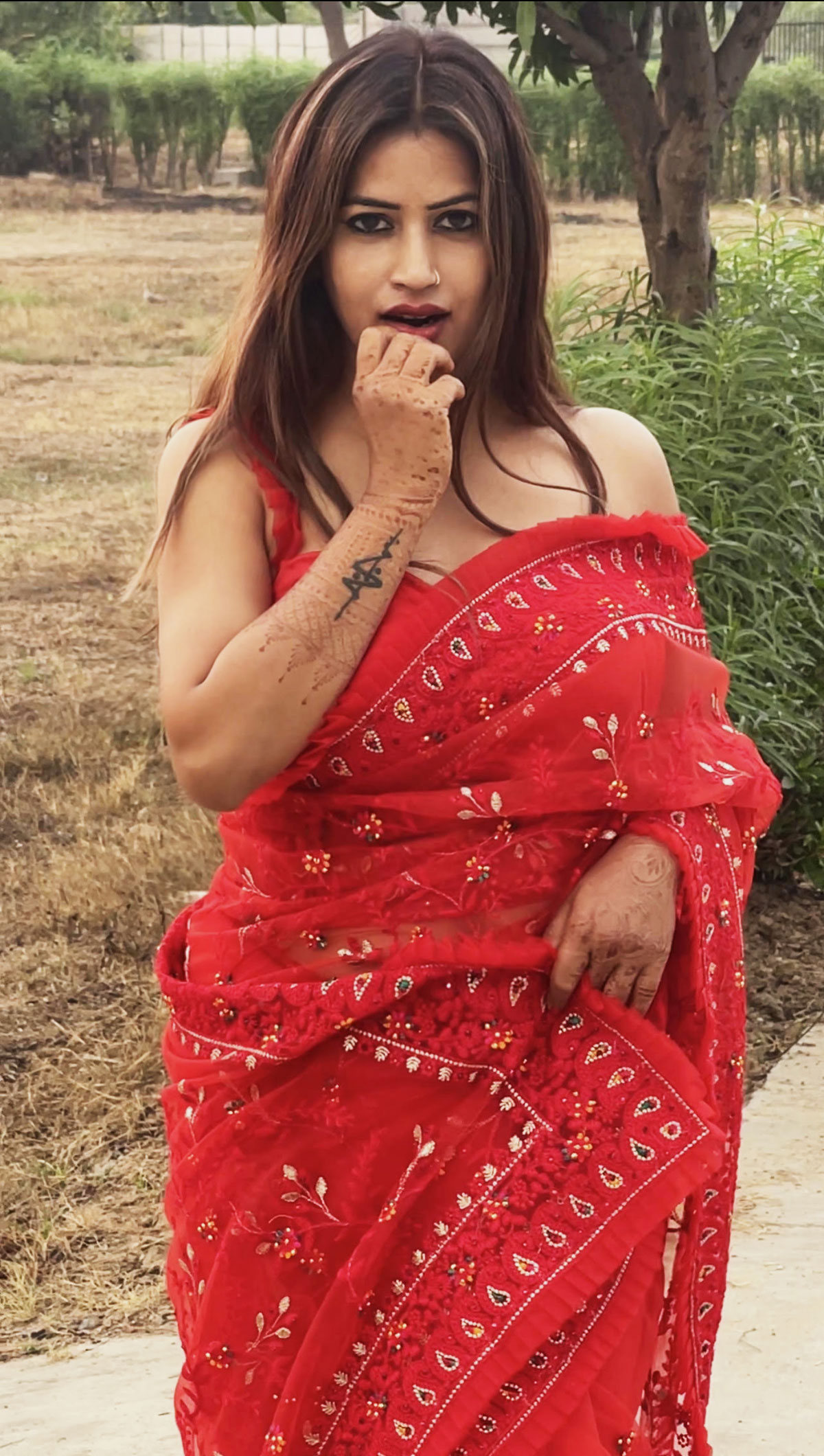 Red Netted Saree